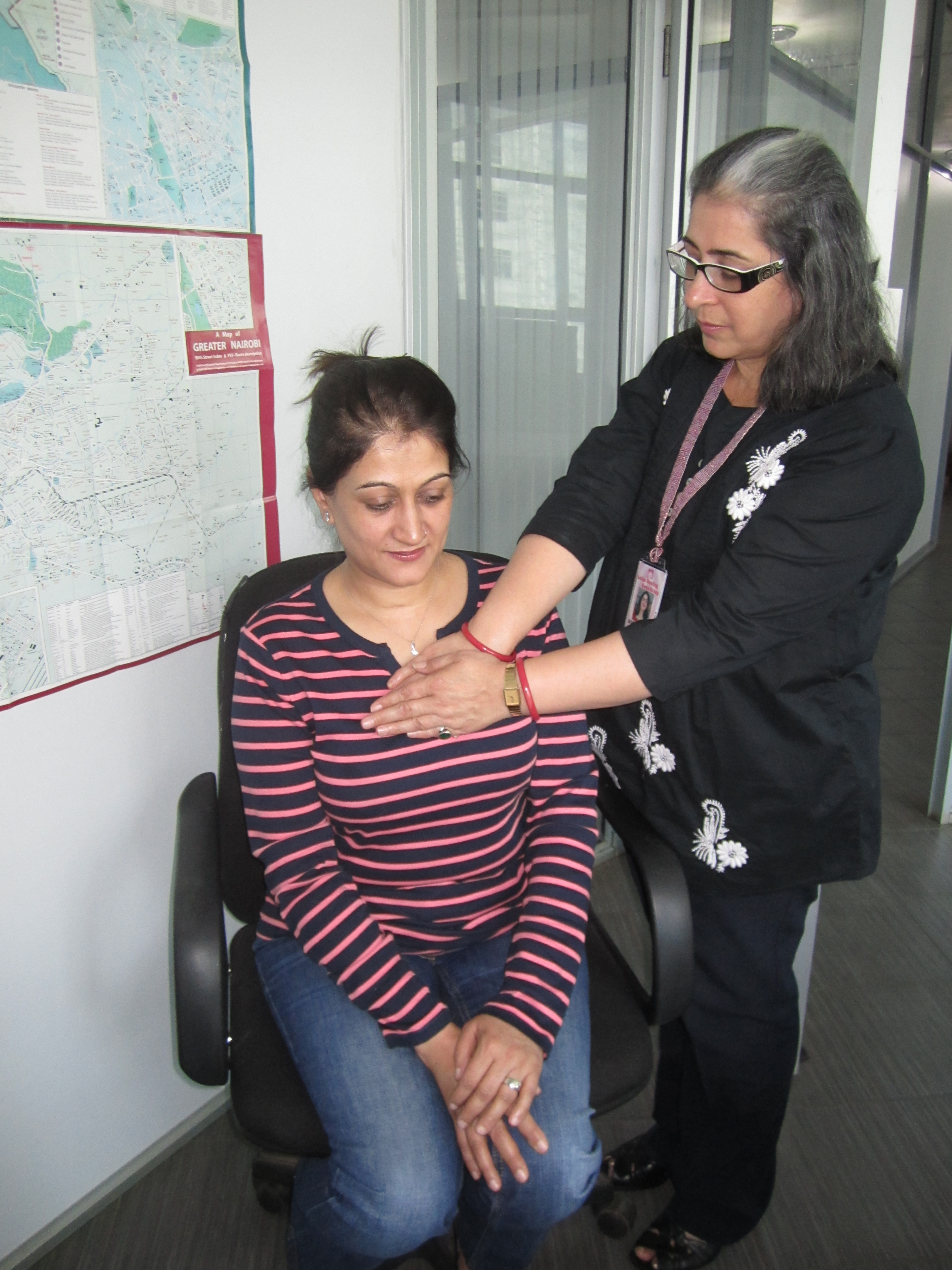 A Moment of Calm …..as Kamal gives trauma Reiki to a Westgate incident survivor