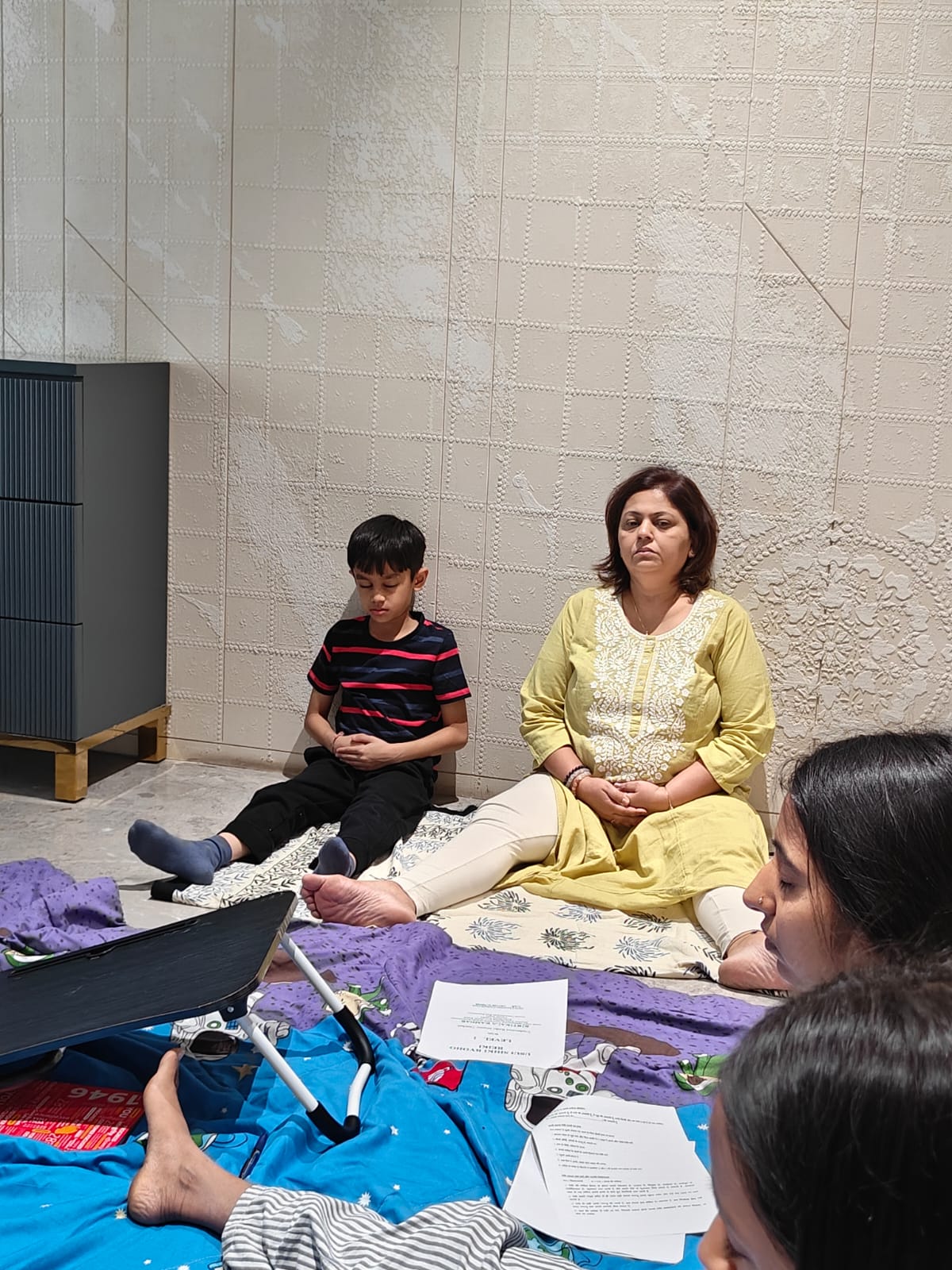 I was in Ahemedabad in Ridhis house. Ridhi told me that she wished her daughter of 10 years to start her spiritual journey by stepping into the world of Reiki. There was also a househelp of 20 years, Usha, who had anger issues due to a traumatic childhood, who i wanted to teach Reiki as well. Then Ridhis son Aarav, aged approx. 6 years, said he wanted to learn as well.