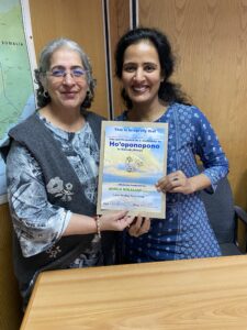 However, undaunted I, Monica Gokaldas moved ahead with training just the two ladies as they were quite keen. They both experienced a lot of release of emotions and were able to go through all the exercises very well. The ladies Sarika and Nikita did not have many past issues yet understood the significance of Ho’oponopono in daily life. They particularly found it interesting to do forgiveness with immediate family members and with elements of Mother Nature.